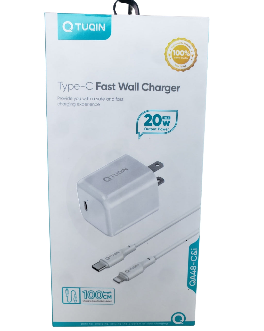 - El Cargador TUQIN QA48 es una solución eficiente y moderna para cargar tus dispositivos con entrada Tipo-C. Diseñado para ofrecer carga rápida y segura, cuenta con un diseño compacto, materiales resistentes y excelente compatibilidad con equipos que requieren hasta 20W de potencia. Ideal para uso diario en el hogar, la oficina o en movimiento.